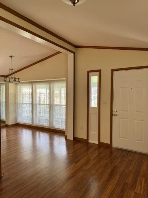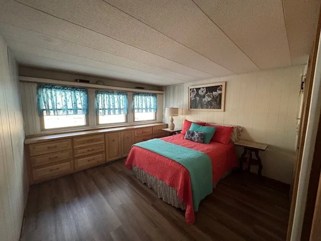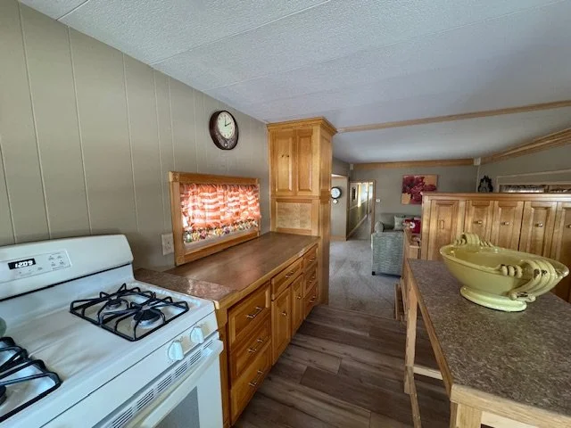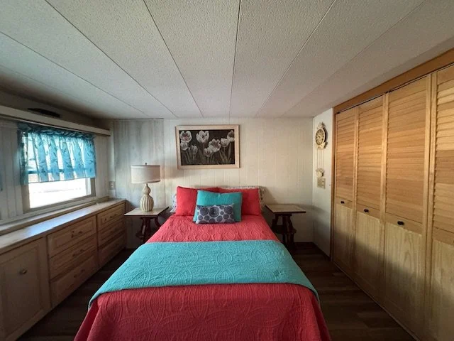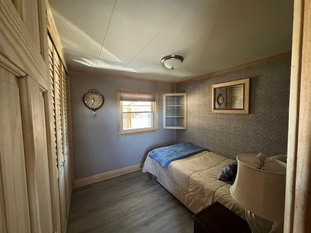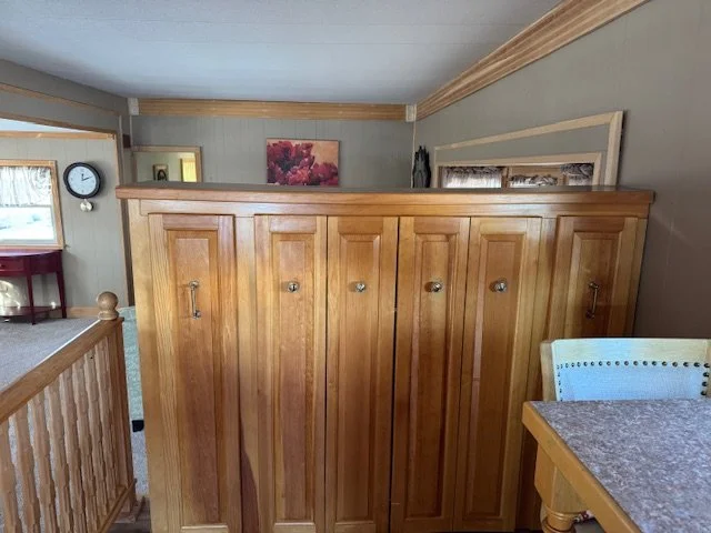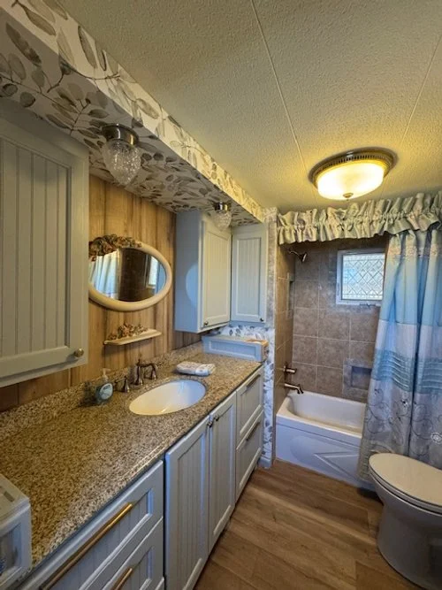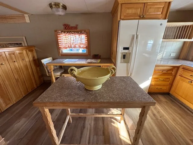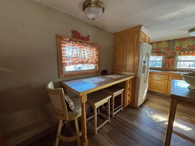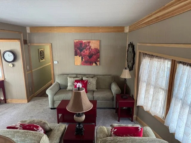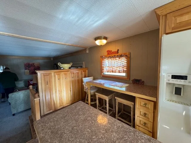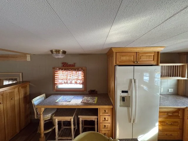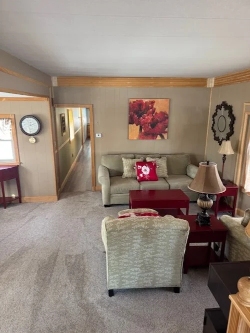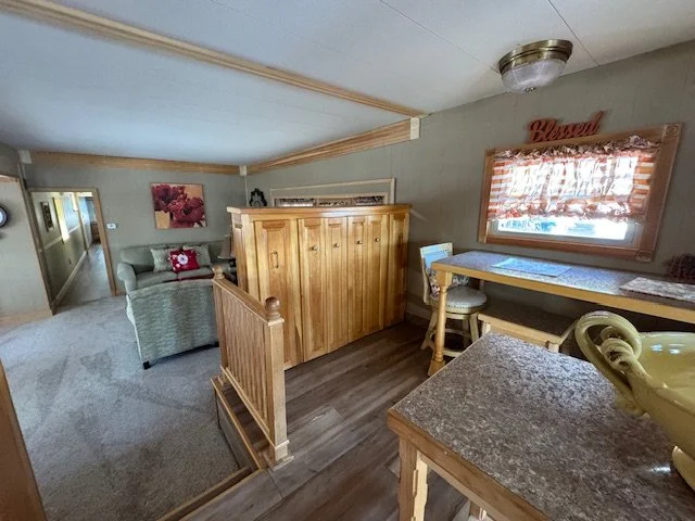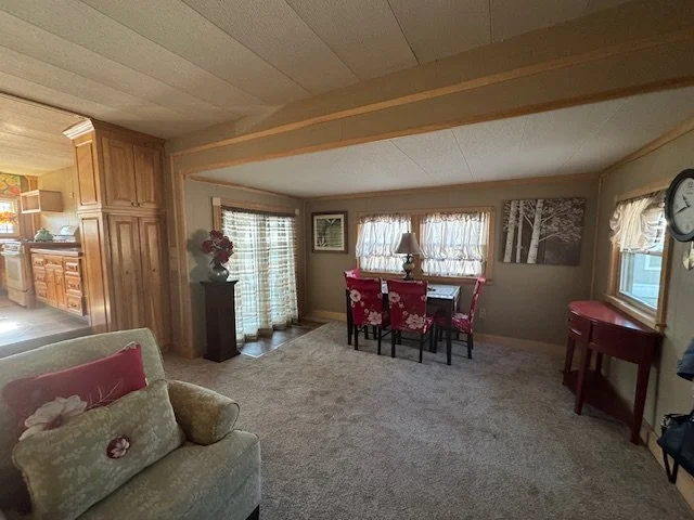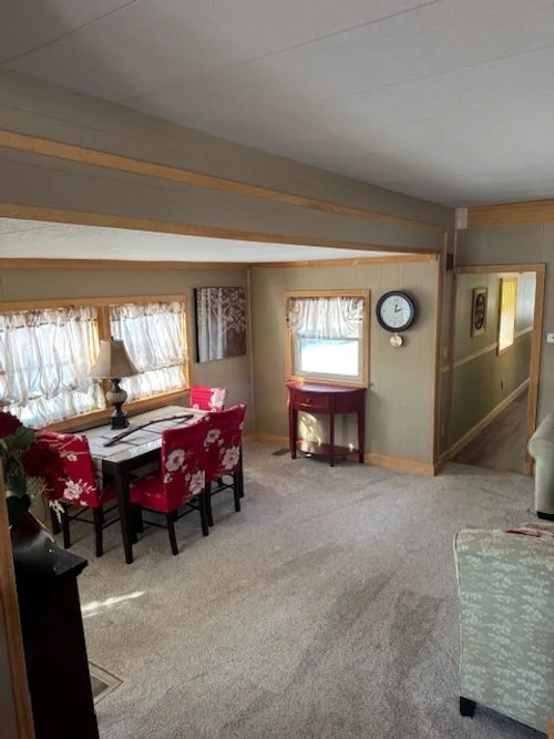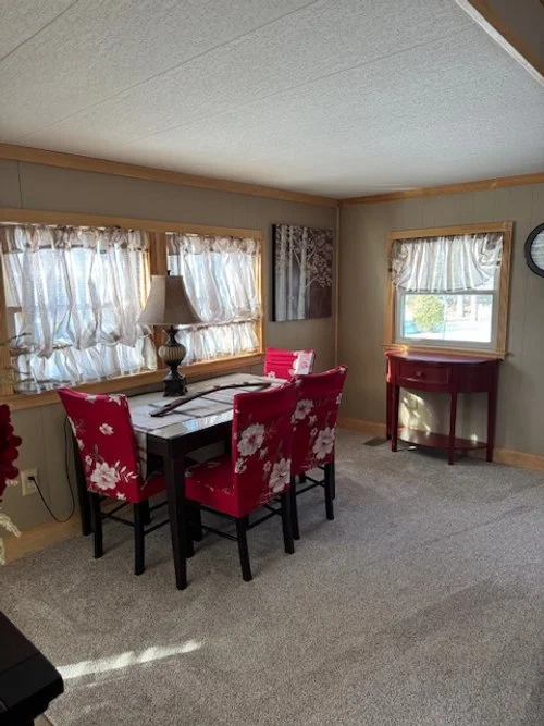 This home is a 1972 Holly Park with 2BR 1.5 BA with 1242 sq ft of living space that is conveniently situated next to the heated clubhouse pool. There is a step up to the dining area adjacent to the kitchen. The living area is off the dining area with a bonus room as your 4-season room. This is heated by either electric heat or a wood stove set in a nice, stoned platform. The heating and rubber roof have been replaced in 2018. There is another bonus room 19”x10’ that can be used as a workshop or craft space for those who love to tinker. The front open-air 7’x15’ porch has new Trek decking with minimal maintenance.