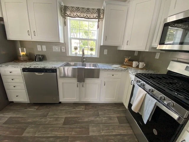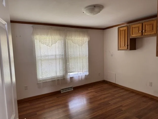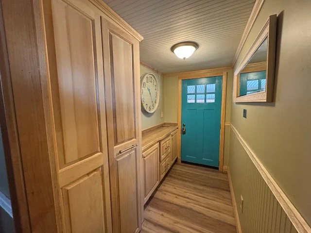 This home is a 2BR 1 BA custom renovated home with unique attention to detail. The kitchen has been remodeled with new cabinets, counter tops and added storage space and bright sunlight fills the area. As you step down into the living area your dining room and living room boasts crown molding with natural tones of wood. The 2nd bedroom has a custom-built wardrobe with bifold closet doors. The side entrance greets you with a long natural countertop and bifold doors which hide your stackable washer and dryer for a fresh clean look. In the rear of the home is the master bedroom with custom built-ins below the windows and a double closet for extra storage. Laminate floors flow through the home with beadboard wainscot in multiple areas of the home. The updated hot water heater, windows, HVAC and siding all contribute significantly to enhance this home’s overall appeal. The perimeter lot has a private backyard surrounded by woods. This is a move in ready home just waiting for you.